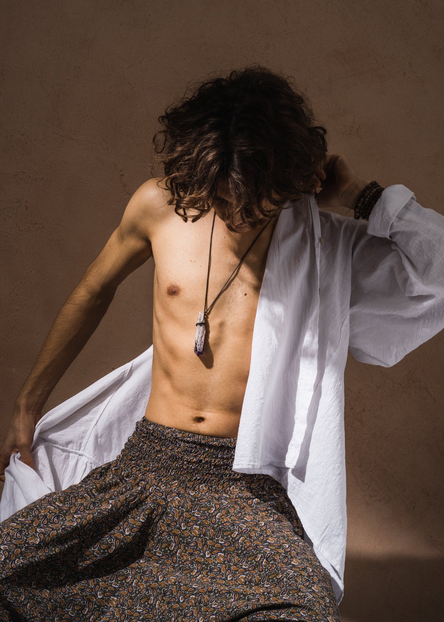 Minimalistyczny naszyjnik z naturalnym ametystem. Bawełniany regulowany sznurek i niepowtarzalny kształt kamienia sprawiają, że każdy naszyjnik jest wyjątkowy.