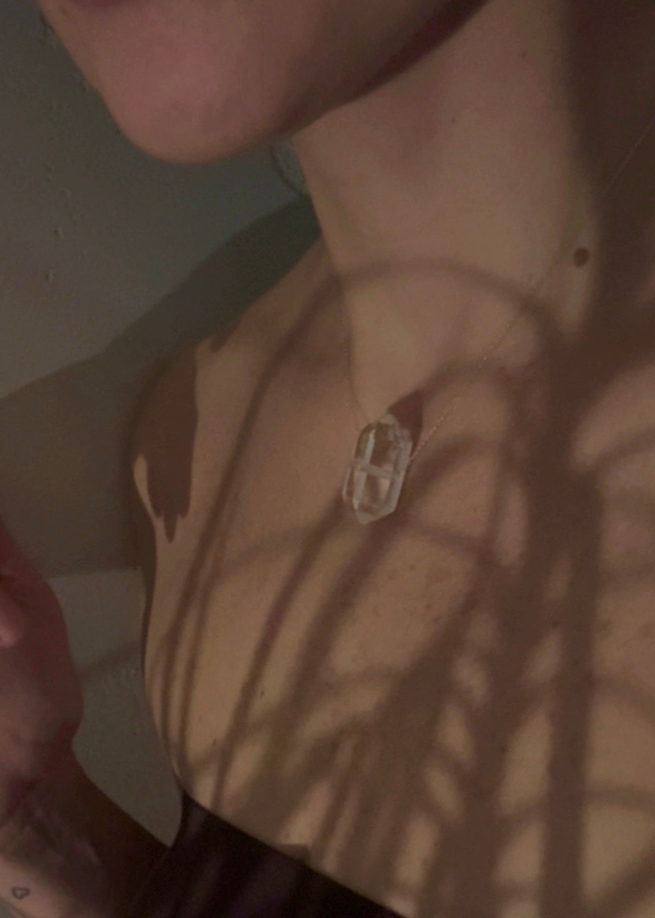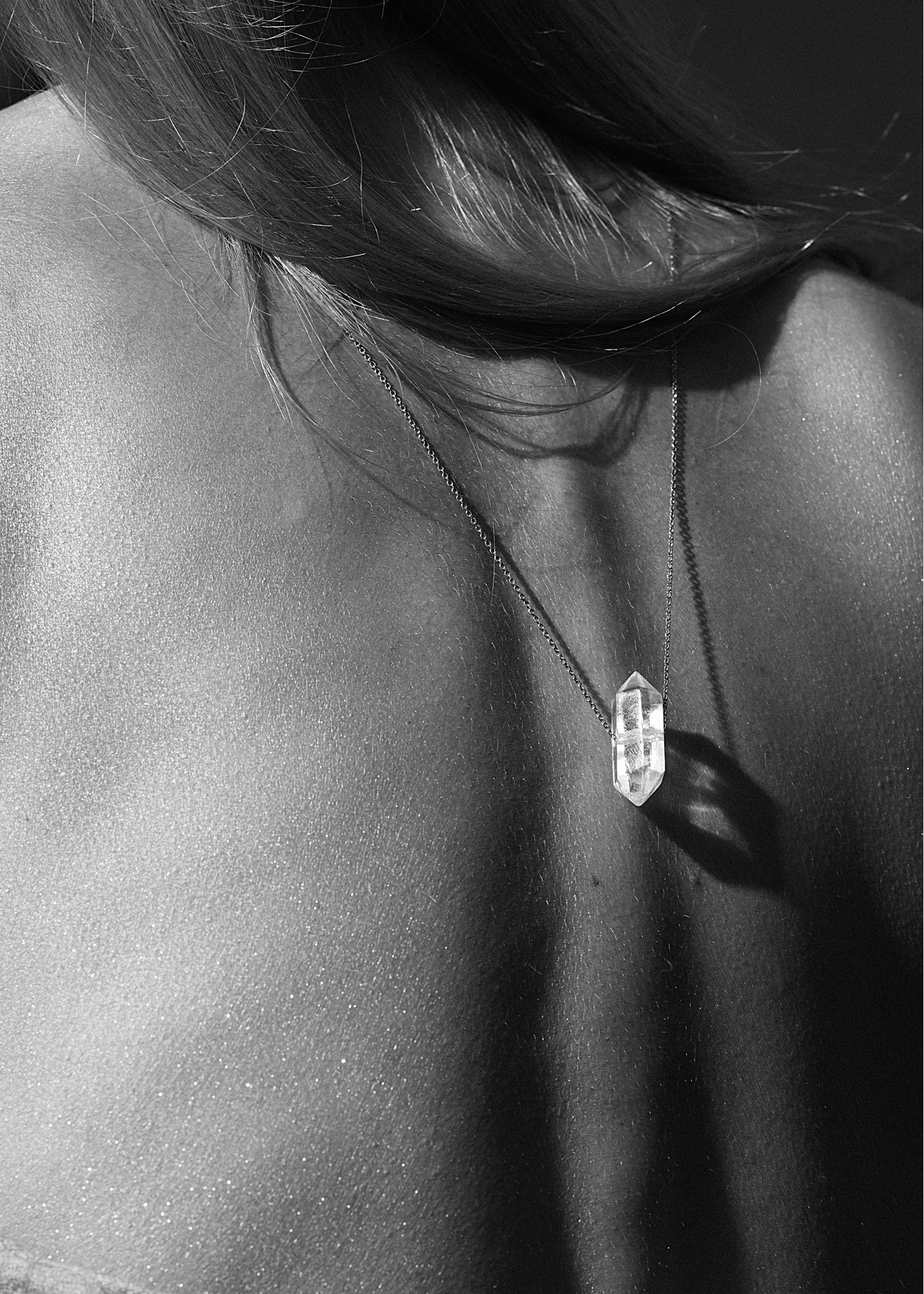 Każdy kryształ posiada naturalne mikrorysy i różni się przejrzystością oraz niepowtarzalnym przenikaniem światła, co nadaje naszyjnikowi indywidualny charakter.