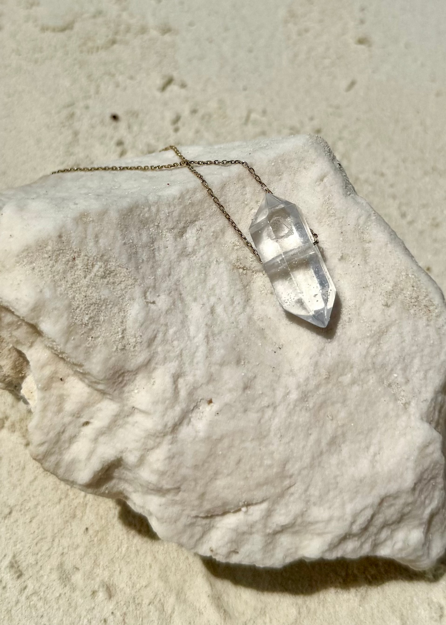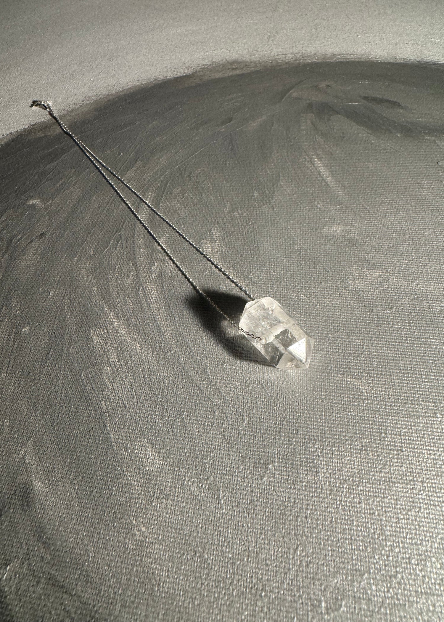 Sopelkowy kryształ górski na łańcuszku o splocie Ankier srebrnym, pozłacanym 24K złotem lub delikatnym złotym próby 585(14K).