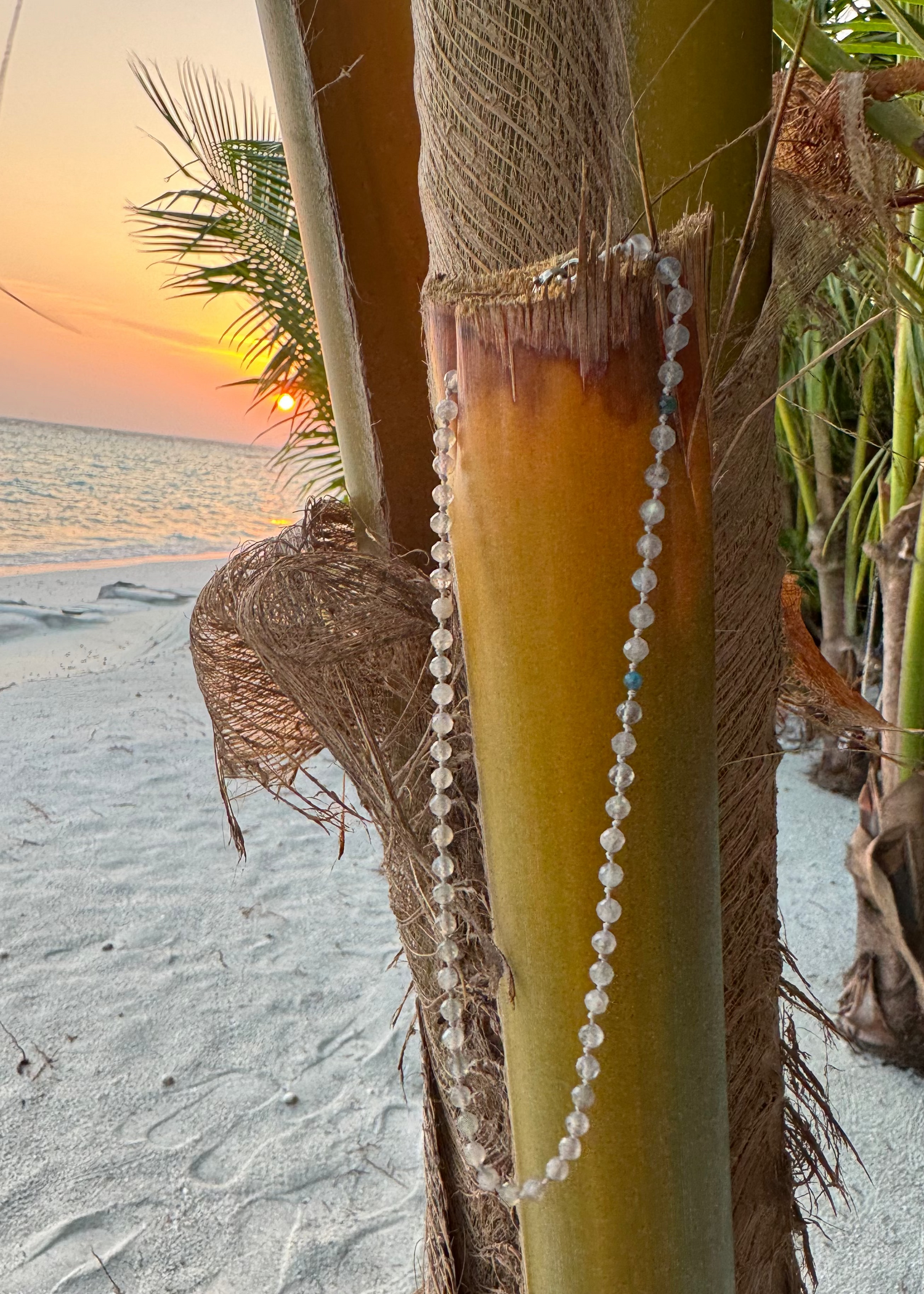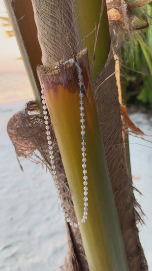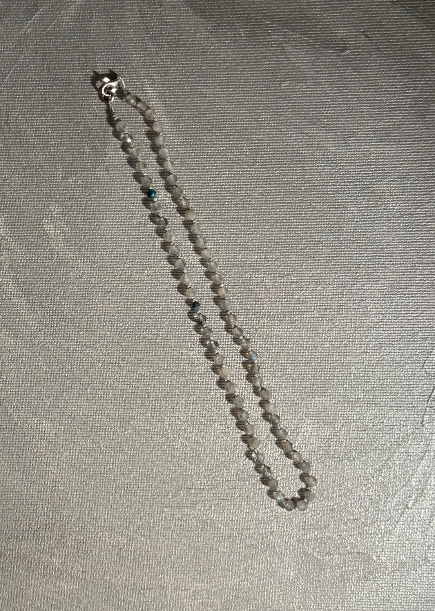 Prześliczny, delikatny choker z drobniutkich labradorytów z dodatkiem apatytów. Ma 36 cm długości i posiada zapięcie typu karabińczyk. Wykończony w srebrze. Możliwe jest noszenie go w formie bransoletki na rękę. Jedyny, ręcznie wykonany przez artystkę.