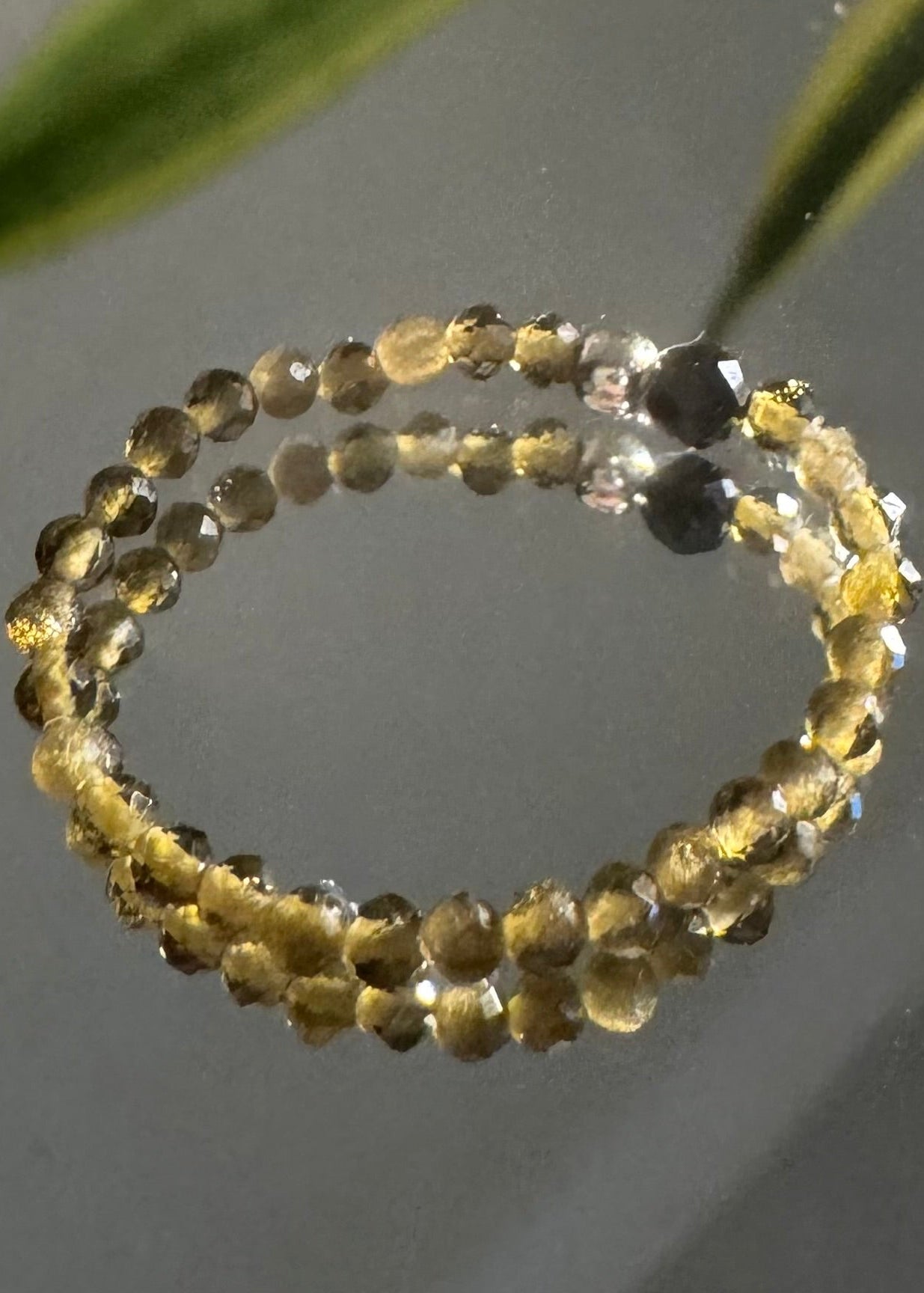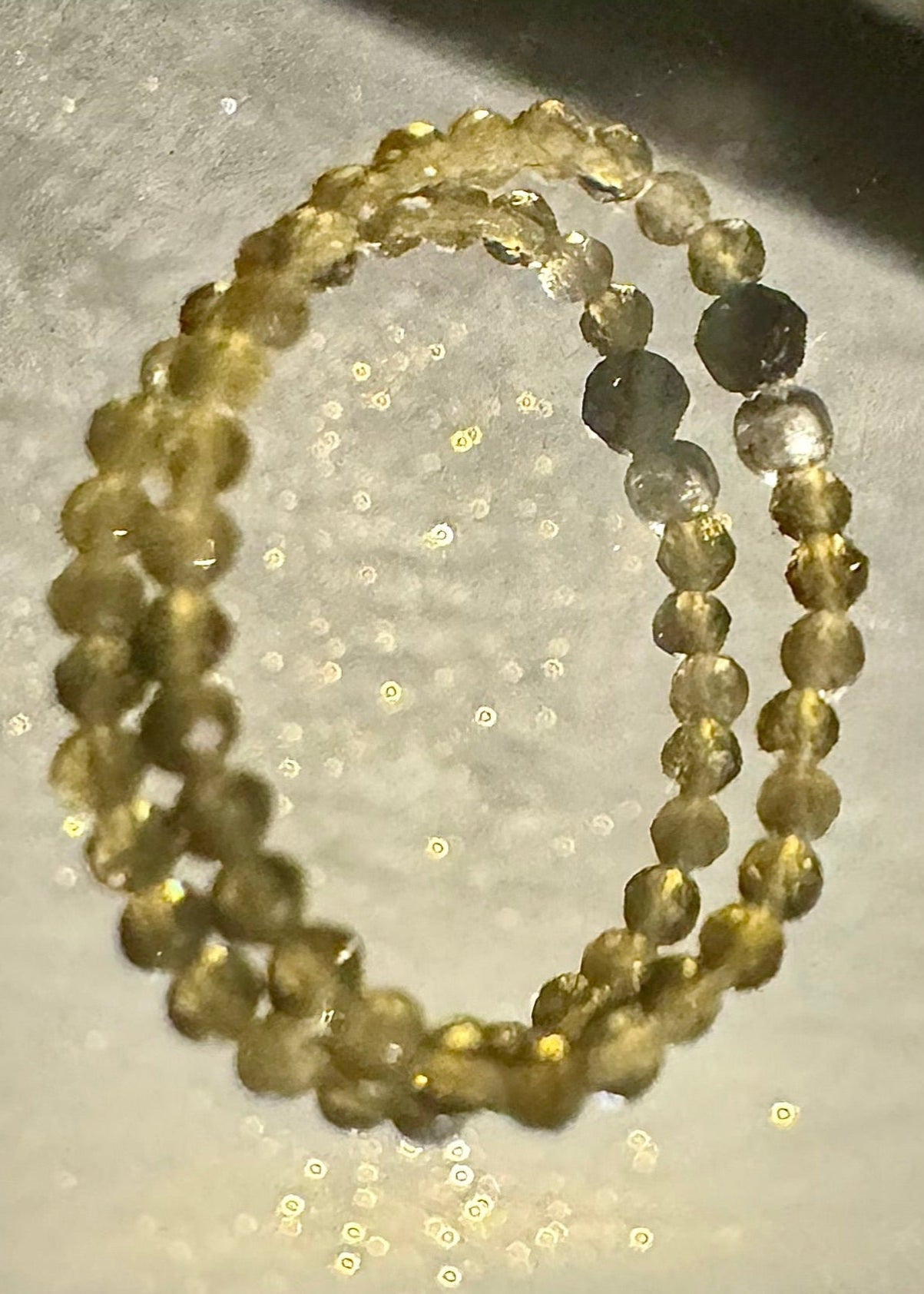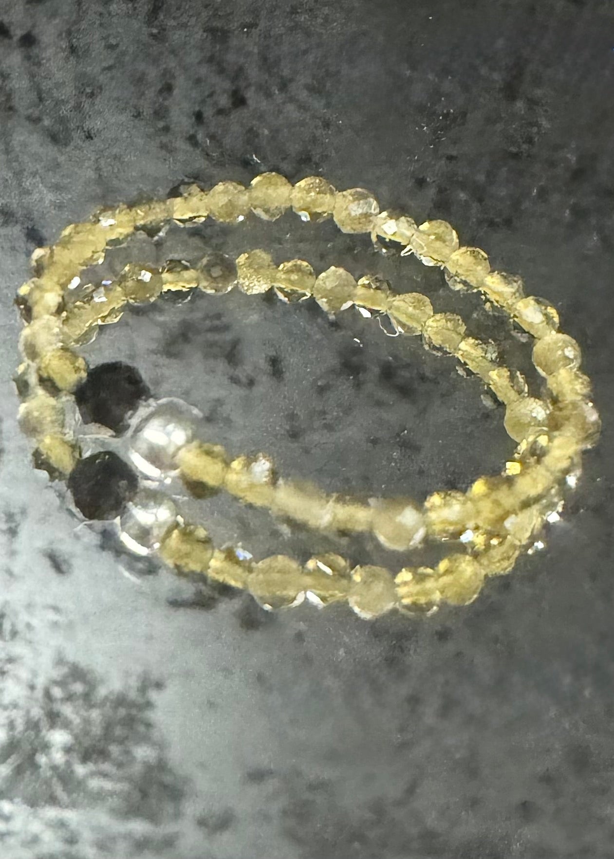 Piękny pierścionek elastyczny z drobnych kamieni obsydianów z czarnym turmalinem i srebrną kuleczką. W rozmiarze M.